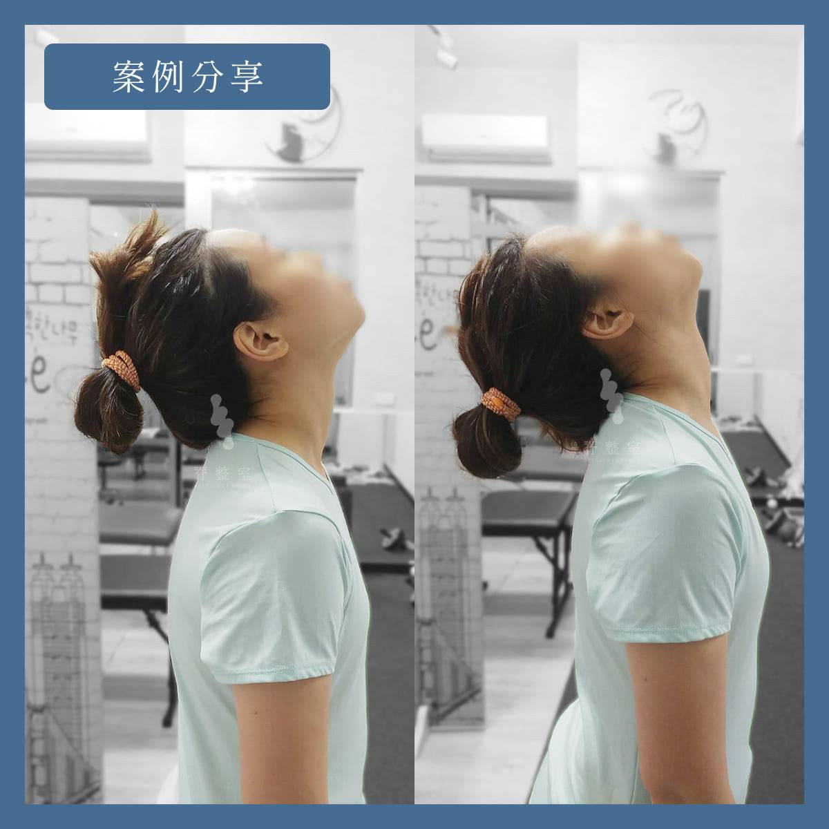 透過美式整復與筋膜放鬆使姿麟頸部後仰角度明顯拉長許多